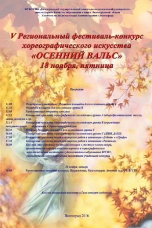 Конкурс-фестиваль хореографического искусства «Осенний вальс» проводится ежегодно среди творческой молодёжи: студенческих коллективов факультетов ВГСПУ, студентов хореографического отделения института художественного образования ВГСПУ, молодых специалистов учреждений образования и культуры — выпускников ВГСПУ, а также участников детских хореографических коллективов учреждений образования и культуры.