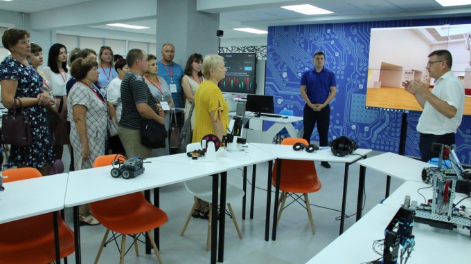 После члены делегации побывали в научной библиотеке ВГСПУ и технопарке универсальных педагогических компетенций. Они познакомились с современными технологиями, которые сегодня применяет вуз при подготовке специалистов для учреждений отрасли образования. Ректор ВГСПУ Александр Коротков отметил, что одним из направлений работы технопарка является реализация совместных проектов и пригласил коллег из Станично-Луганского района к сотрудничеству на площадке нового образовательного пространства.